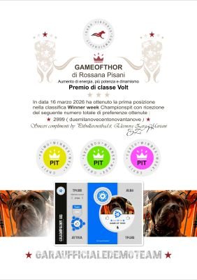 GAMEOFTHOR di Rossana Pisani Aumento di energia, più potenza e dinamismo Premio di classe Volt I