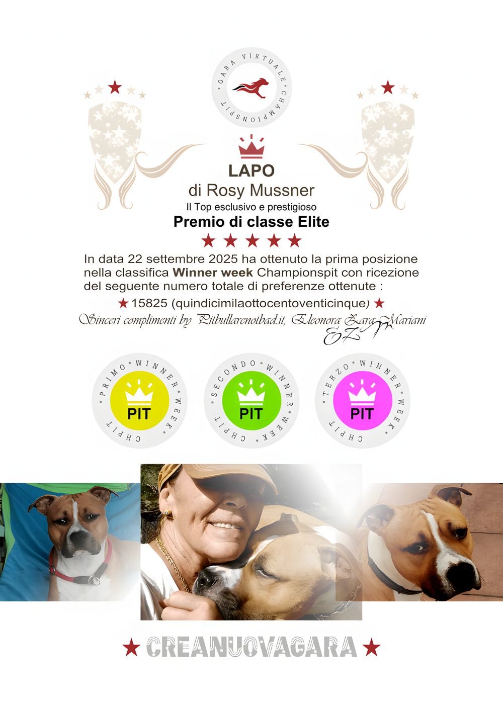 In data 22 settembre 2025 ha ottenuto la prima posizione nella classifica Winner week Championspit con ricezione del seguente numero totale di preferenze ottenute :
