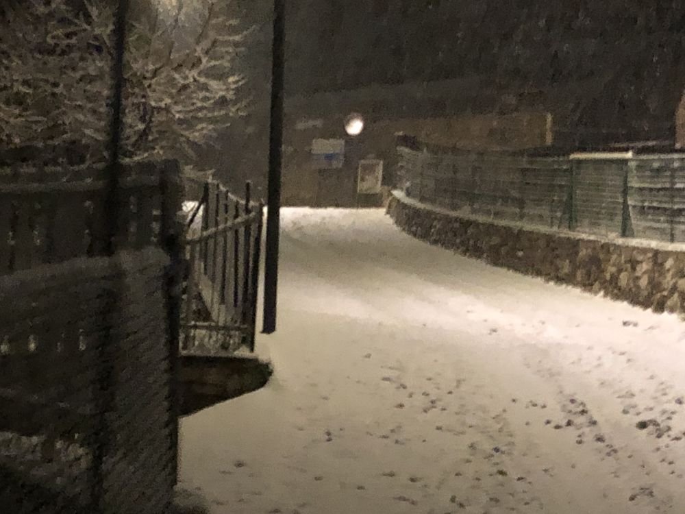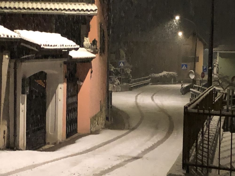 Che atmosfera! 🌨️❄️ Sembra una scena da film: strada imbiancata e silenzio ovattato… però che ansia guidare così 😅 Menomale siete rientrati!