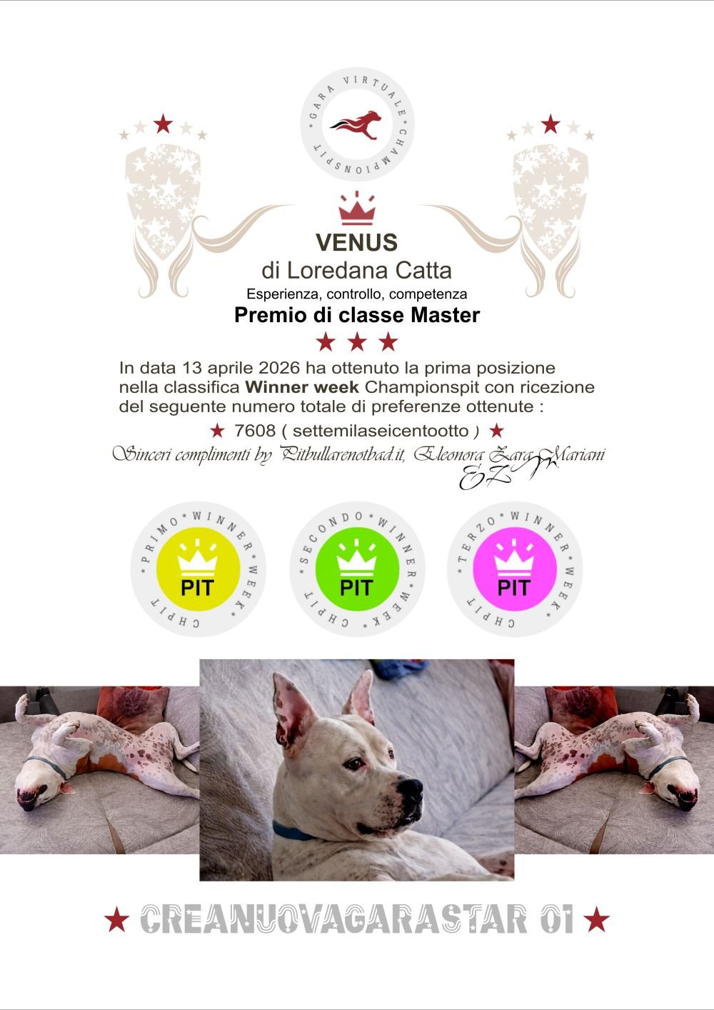 VENUS di Loredana Catta Esperienza, controllo, competenza Premio di classe Master In data 13 aprile 2026 ha ottenuto la prima posizione nella classifica Winner week Championspit con ricezione del seguente numero totale di preferenze ottenute : 7608 ( settemilaseicentootto )