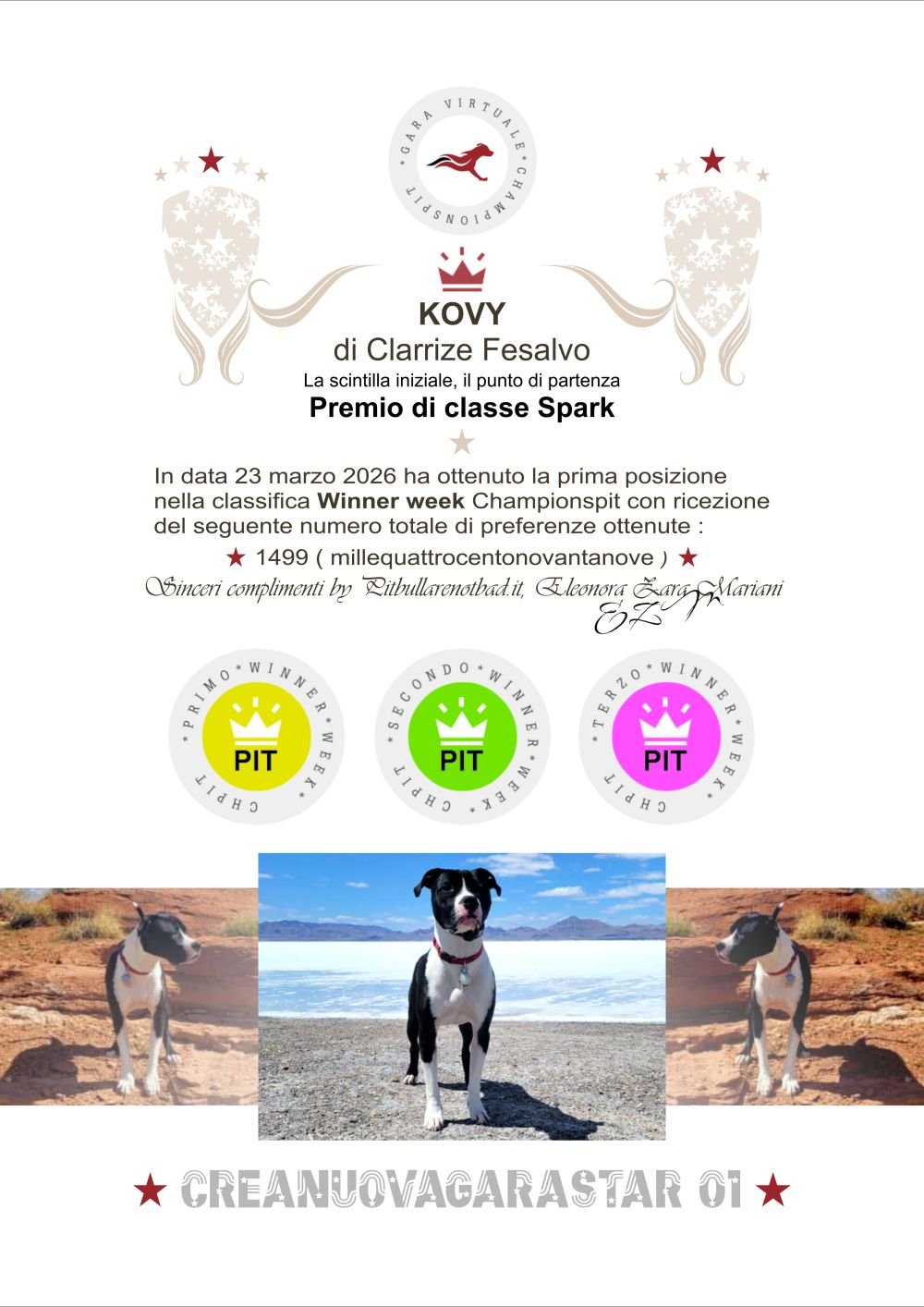In data 23 marzo 2026 ha ottenuto la prima posizione nella classifica Winner week Championspit con ricezione del seguente numero totale di preferenze ottenute :