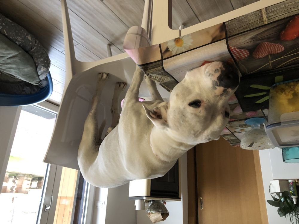 Stolkerizzata nel mangiare il tiramisù….lui il classico cane povero e denutrito 🤣🤣🤣🤣🤣