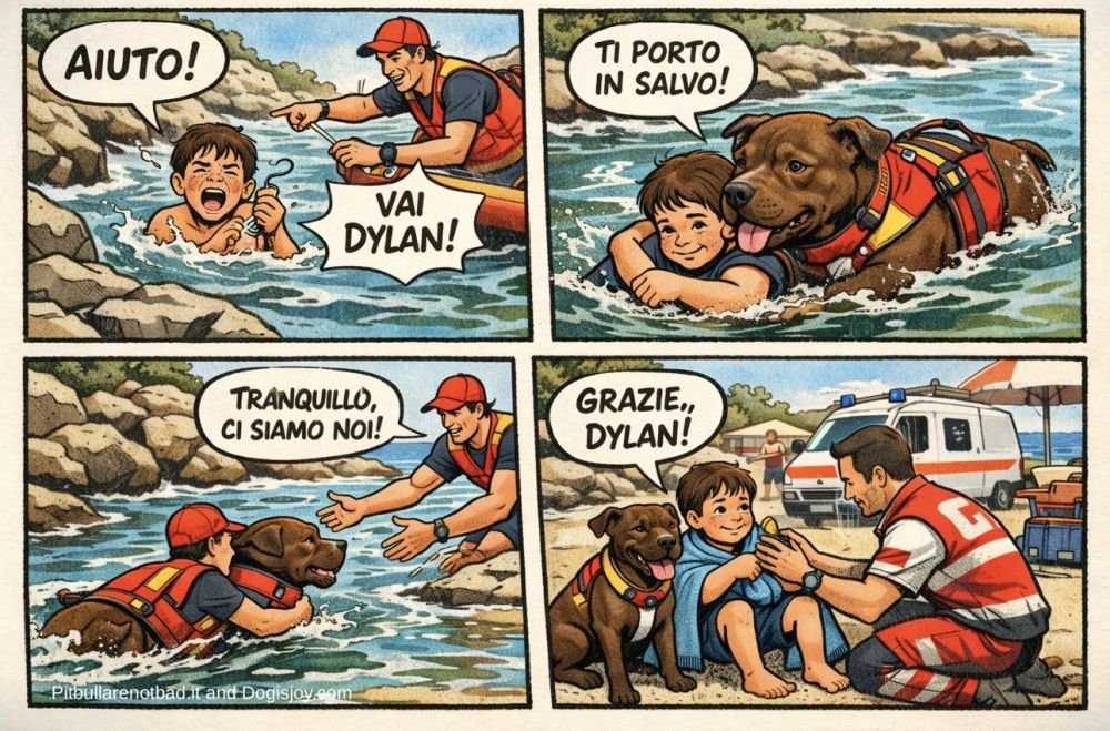 Un Pitbull bagnino protagonista di un salvataggio diventato virale. In Sardegna, a Golfo Aranci, Dylan, cane della Scuola Italiana Cani Salvataggio, ha contribuito in modo decisivo al recupero di un bambino di 7 anni rimasto in difficoltà tra gli scogli dopo essersi ferito con un amo da pesca.