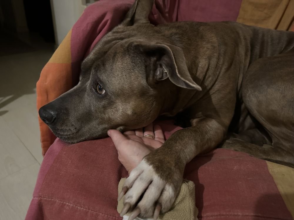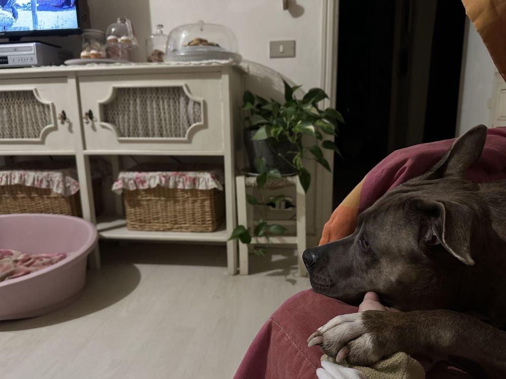 Quando resto a casa dal lavoro per più di due giorni e passiamo ogni minuto insieme, pretende la vicinanza continua….mi ha letteralmente trascinata dalla mia sedia in cucina, alla sua poltrona per tenermi la mano mentre guarda un film western alla tv😅😂😂😂😂😂la amo❤️