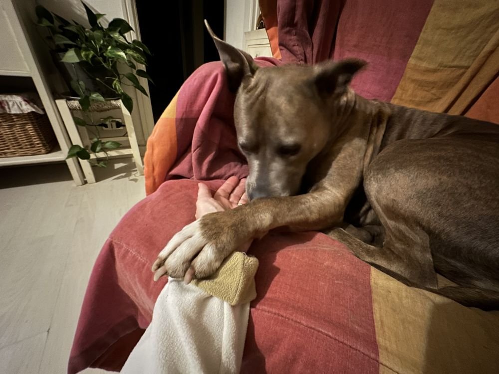 Invece di calmarsi con gli anni è sempre più scatenata nel gioco e si rompe lo sperone un’altra volta da sola per stanare una lucertola……e poi fa l’innocente 🤯